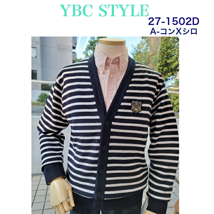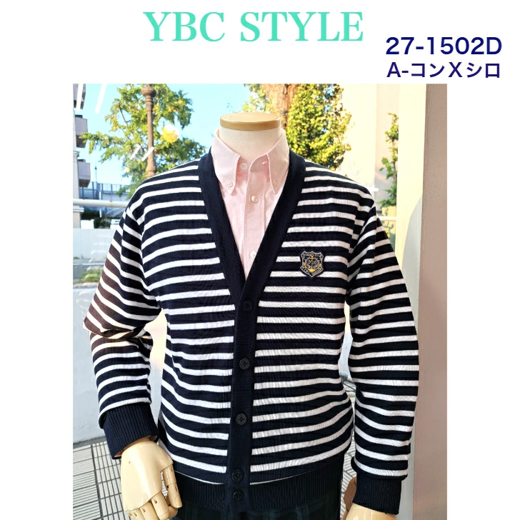 【品名】 YBC イカリ刺繡入りワッペン付きボーダーカーディガン